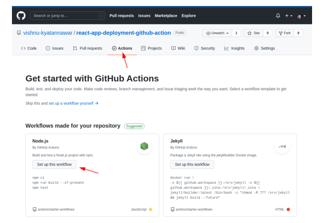 Now that we have the react app in the repository, we can go ahead and create the GitHub Action workflow for deployment.