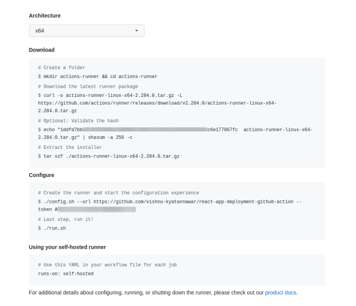 We have the workflow in place but we still did not specify which self hosted server to use. For this you need to add a GitHub Runner to the repo.